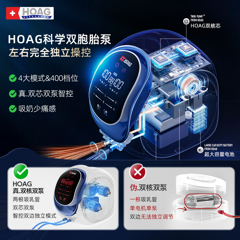 霍格Hoag旗舰级吸奶器电动双边按摩微震双电机全自动无痛免手扶