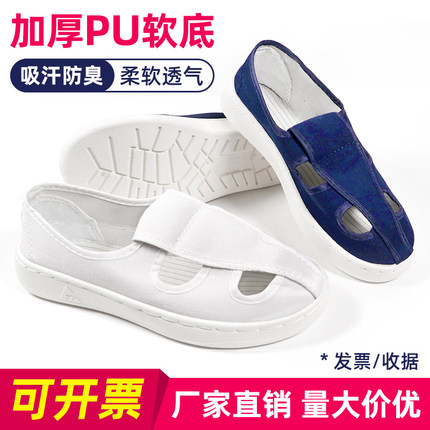 防静电鞋无尘车间电子厂夏季男女蓝白色四孔透气网面PU加厚软底鞋