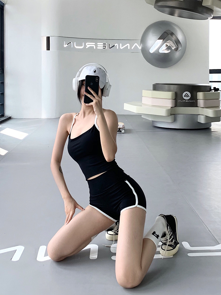 外贸跨境运动内衣女士挂脖吊带衫瑜伽衣服带胸垫文胸速干健身上衣
