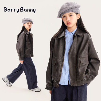 BarryBanny女童皮衣外套春季新款皮夹克儿童时髦春装机车服中大童