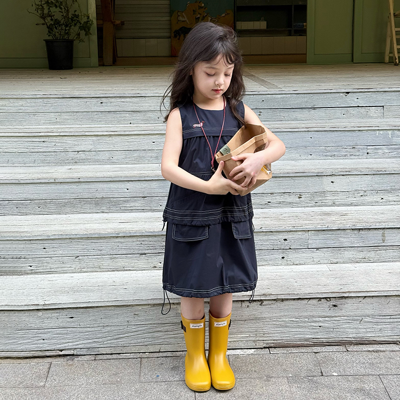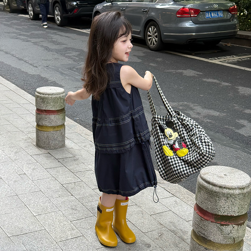清仓2025夏季女童韩版洋气小狗背心裙儿童休闲抽绳工装风连衣裙