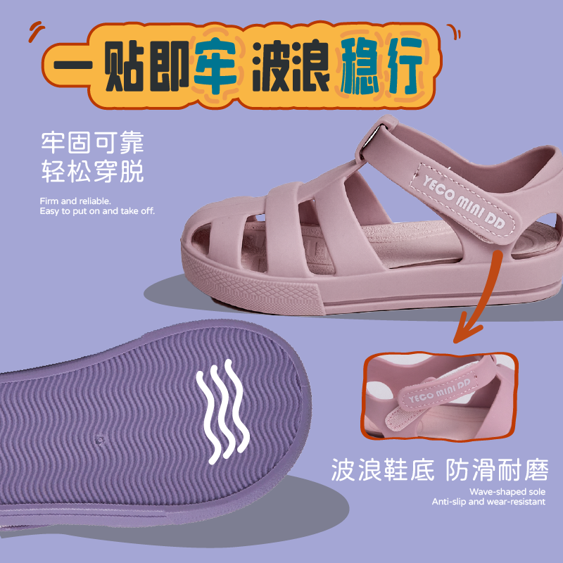 【yeco新品】YECOMINIDD儿童雾面凉鞋罗马鞋女童男童透气沙滩鞋