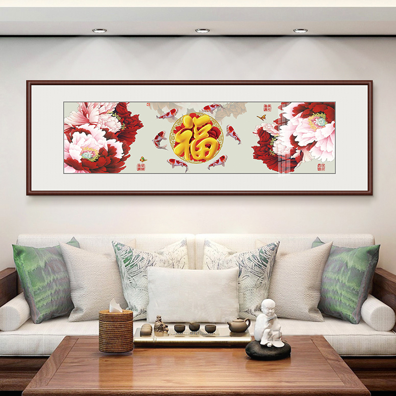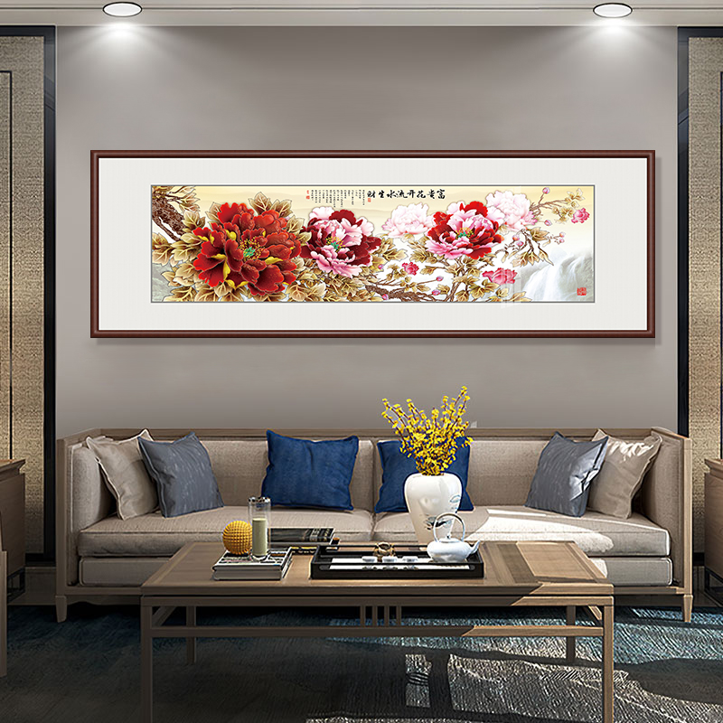 速发新中式花开富贵客厅画家和事兴牡丹挂画大气装饰画流水生财壁