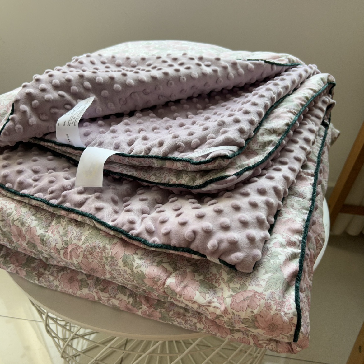 超美的豆豆被可水洗被子被芯纯棉小碎花搭配豆豆绒绗缝单双人