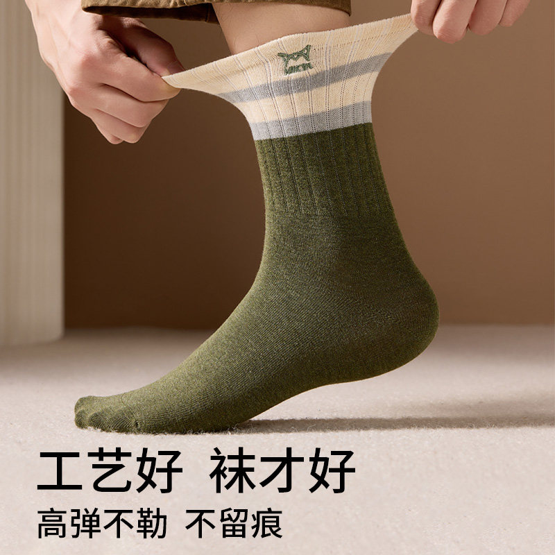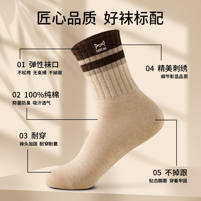 猫人袜子男款秋冬季加厚纯棉10A抗菌防臭运动长袜全棉中长筒袜男