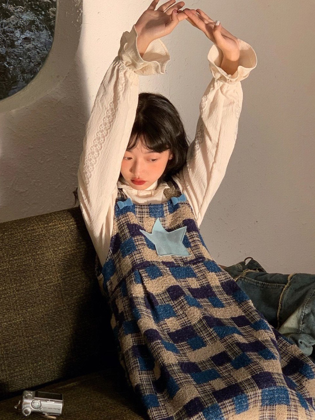 日系复古星星背带连衣裙