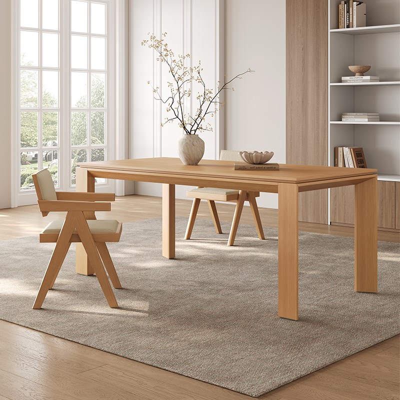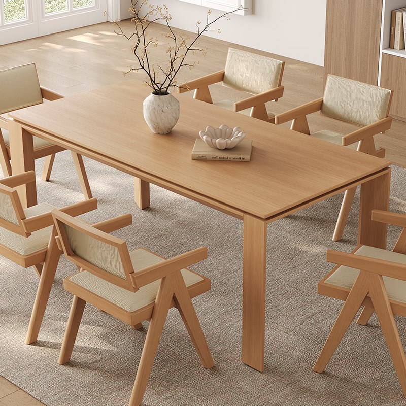 热销原木色餐桌2025新款长方形侘寂风实木大板白蜡木皮奶油风实木