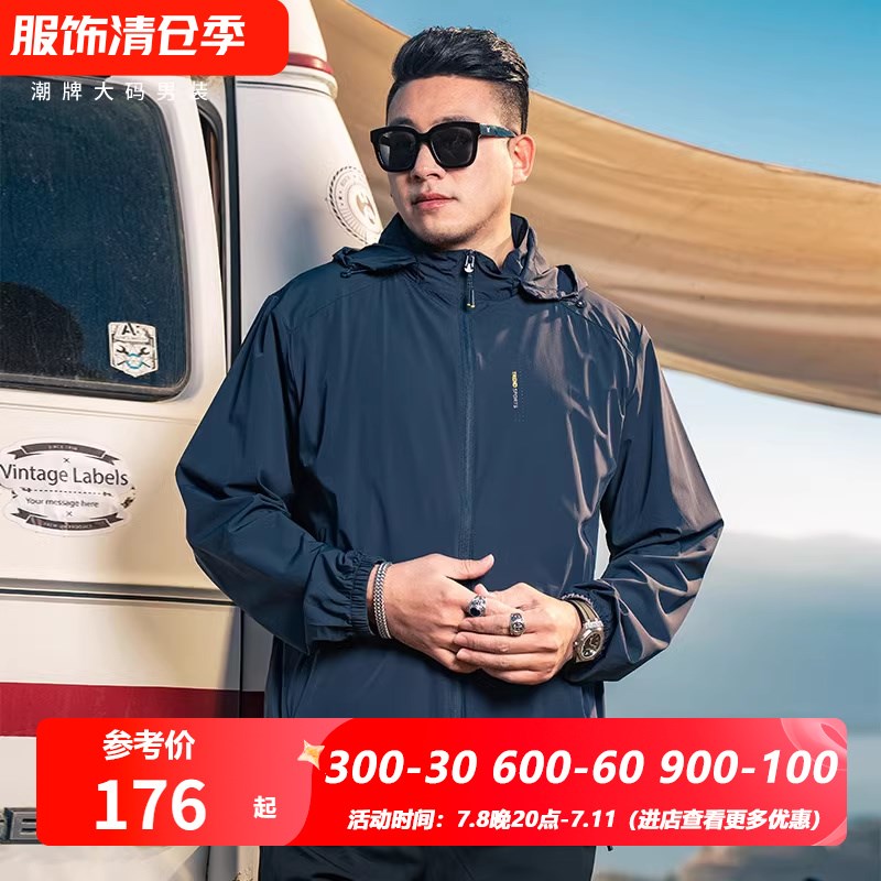 GxxH大码男装连帽防晒衣男夏季透气凉感休闲防晒服宽松外套皮肤衣