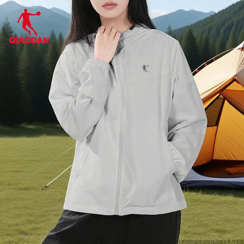 乔丹黑色运动外套女2025秋季新款防泼水薄款冲锋衣户外登山风雨衣