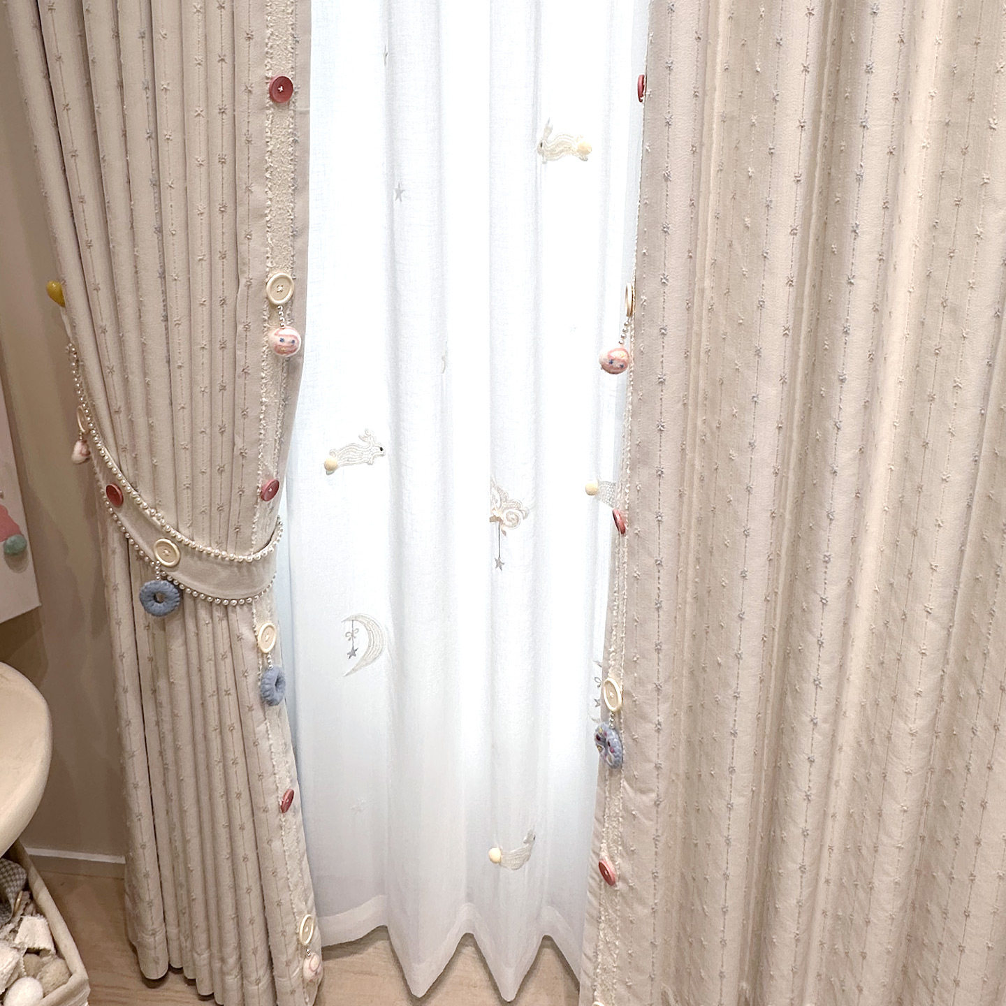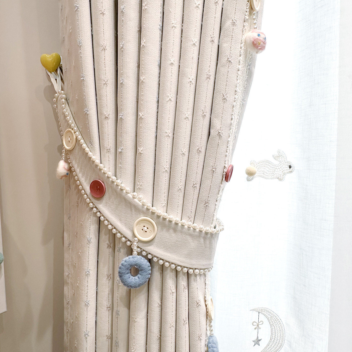 儿童房窗帘女男孩费尔岛奶油风卧室飘窗雪尼尔提花遮光窗帘浅符号