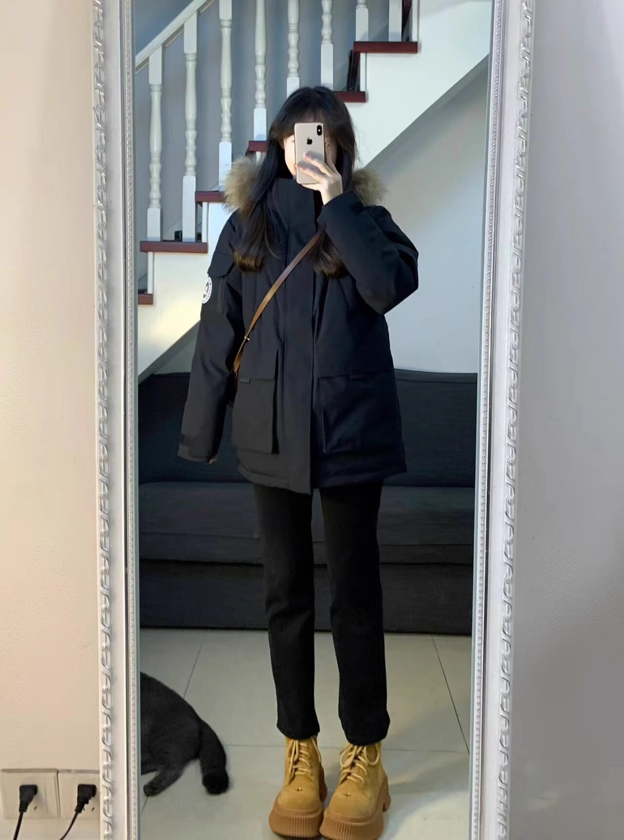 胖mm大码女装大毛领工装派克服棉服女冬季韩版加厚保暖棉衣外套女