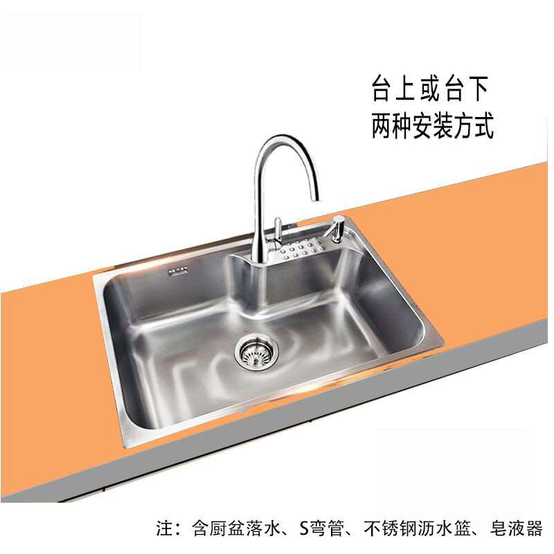 科勒水槽利欧单槽台上台下双用厨房厨盆25342不锈钢加厚洗菜盆