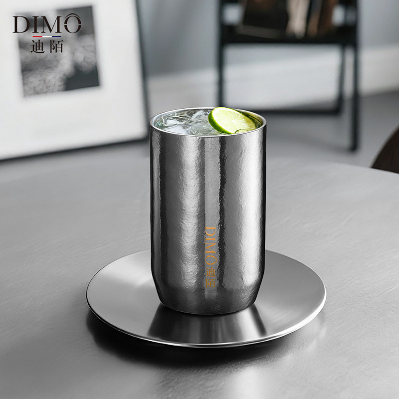 迪陌DIMO纯钛水杯敞口杯茶杯咖啡杯啤酒杯双层钛杯内外纯钛直饮杯
