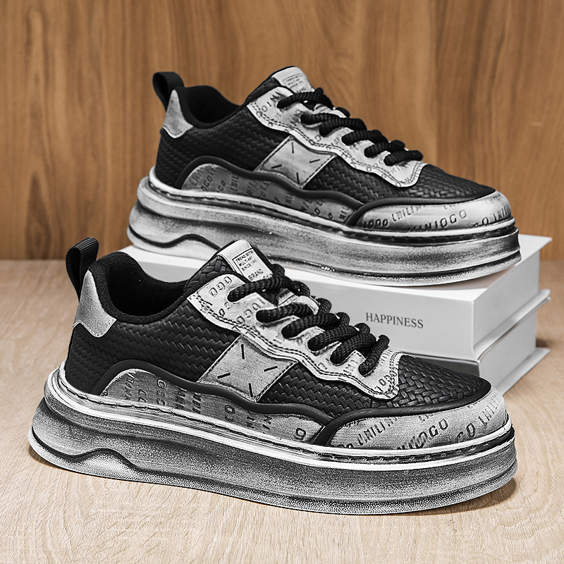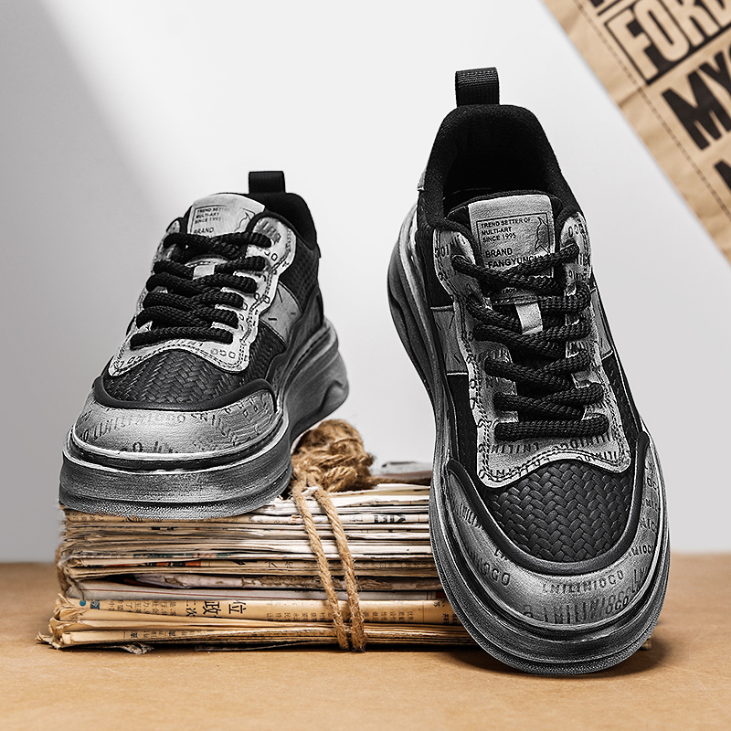 真皮男鞋冬季2025新款软底休闲增高板鞋运动平底做旧擦色复古潮鞋