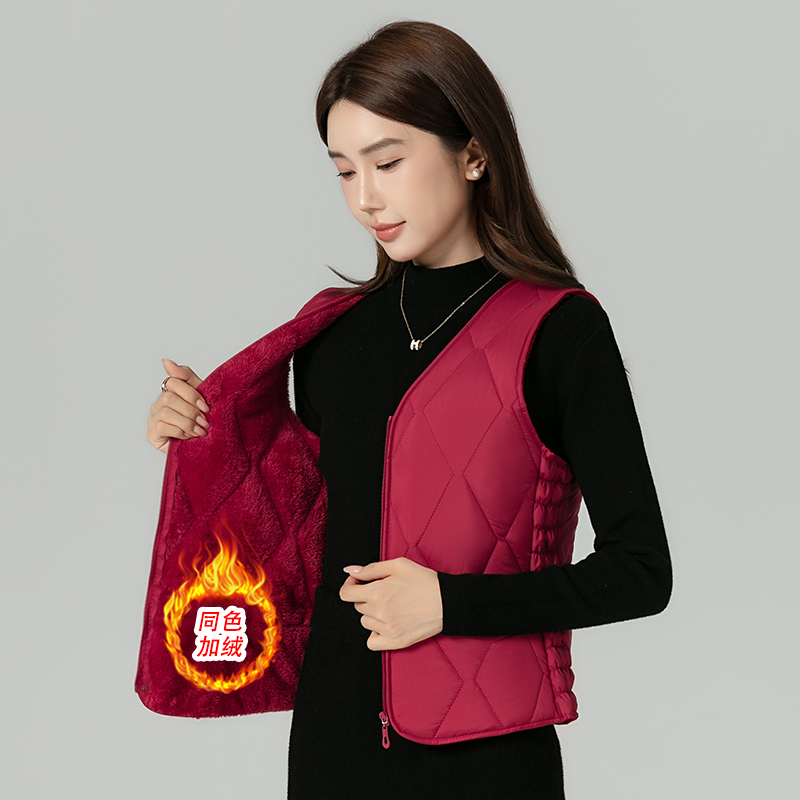 秋冬女士羽绒棉马甲加绒加厚妈妈装内外穿保暖背心马甲中老年坎肩