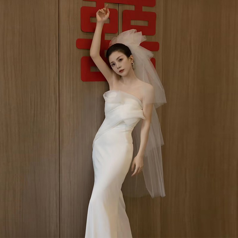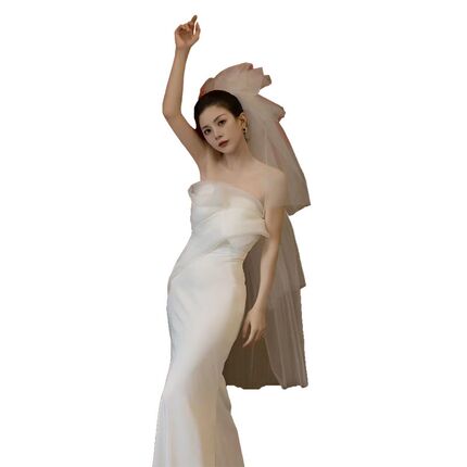 速发抹胸轻婚纱气质高级感新娘结婚订婚出门纱鱼尾收腰缎面晚礼服