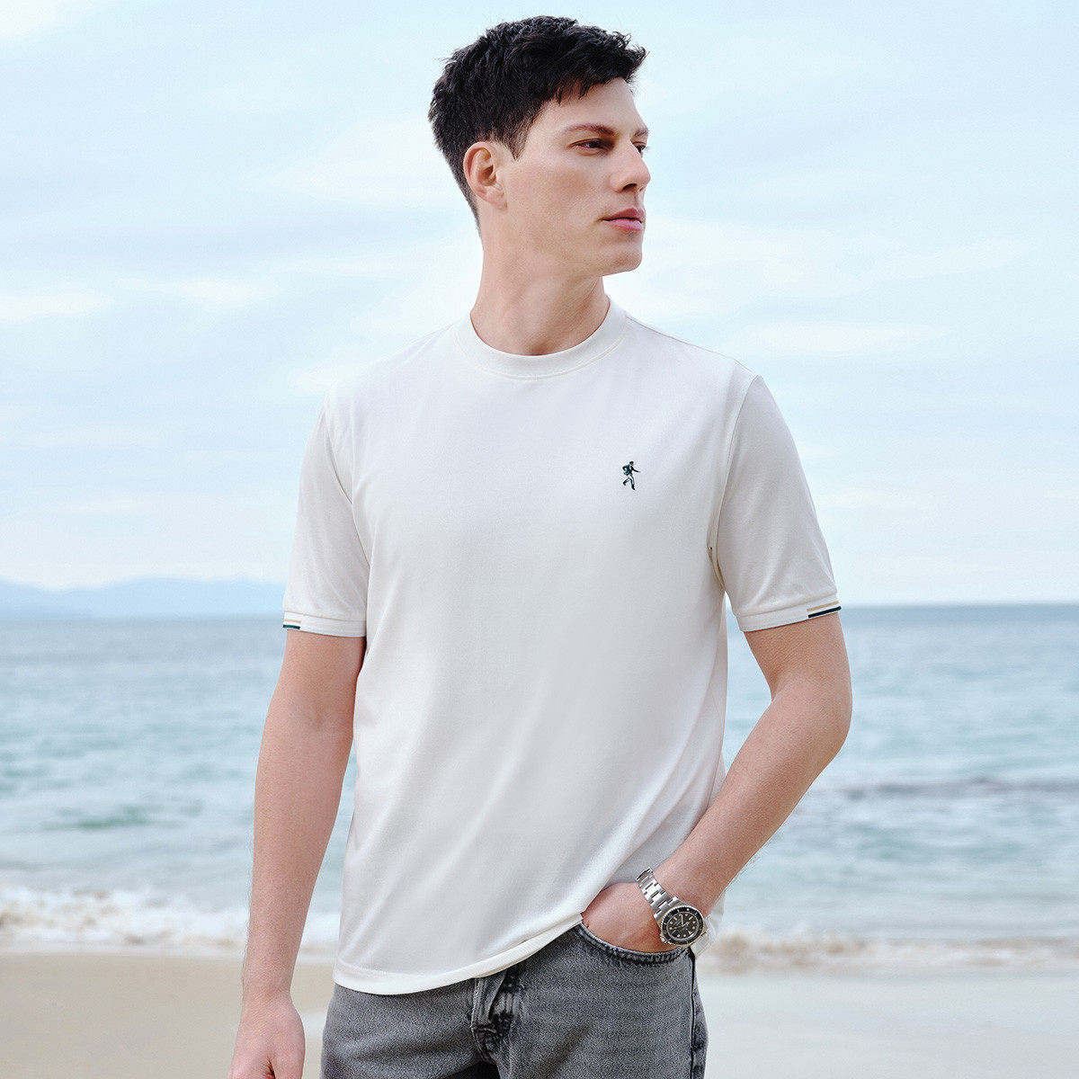 【含桑蚕丝】与狼共舞圆领短袖T恤男2025夏季新款百搭通勤透气短t