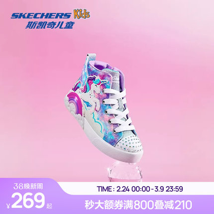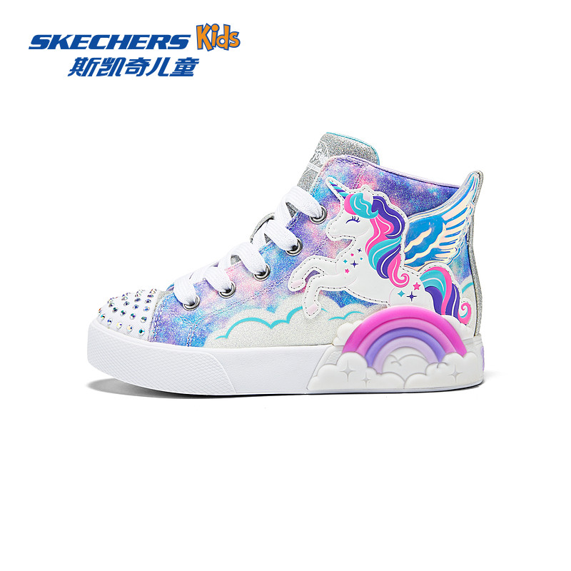Skechers斯凯奇儿童春夏款女童闪钻鞋高帮拉链板鞋时尚公主休闲鞋