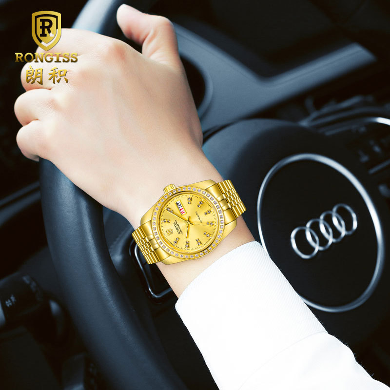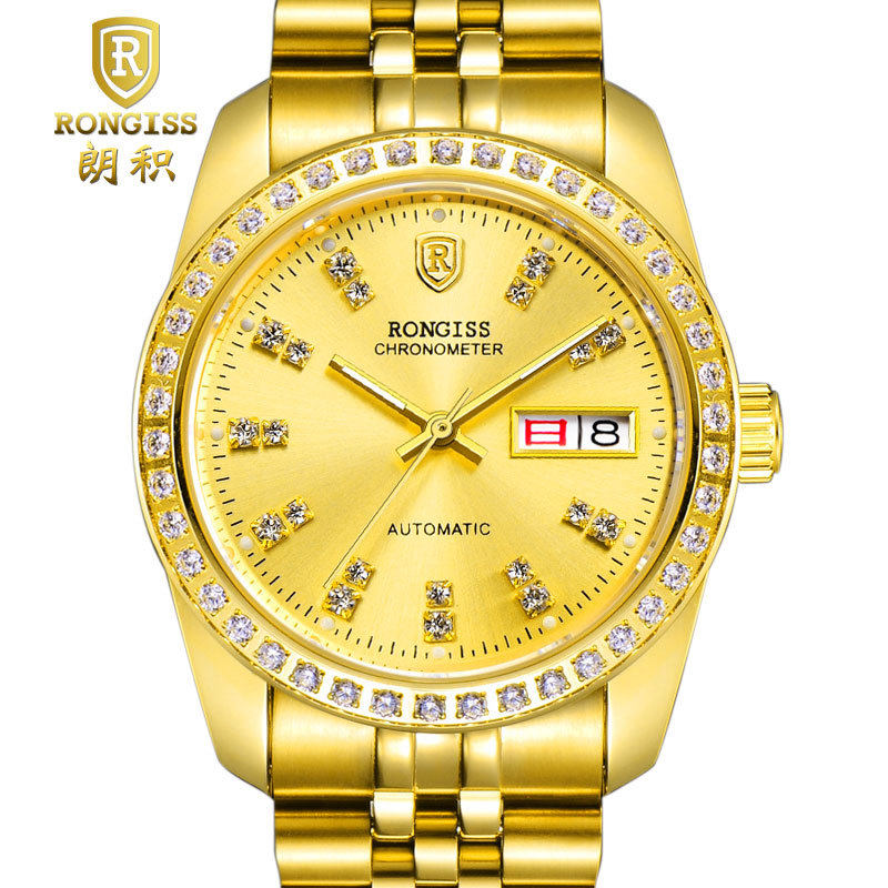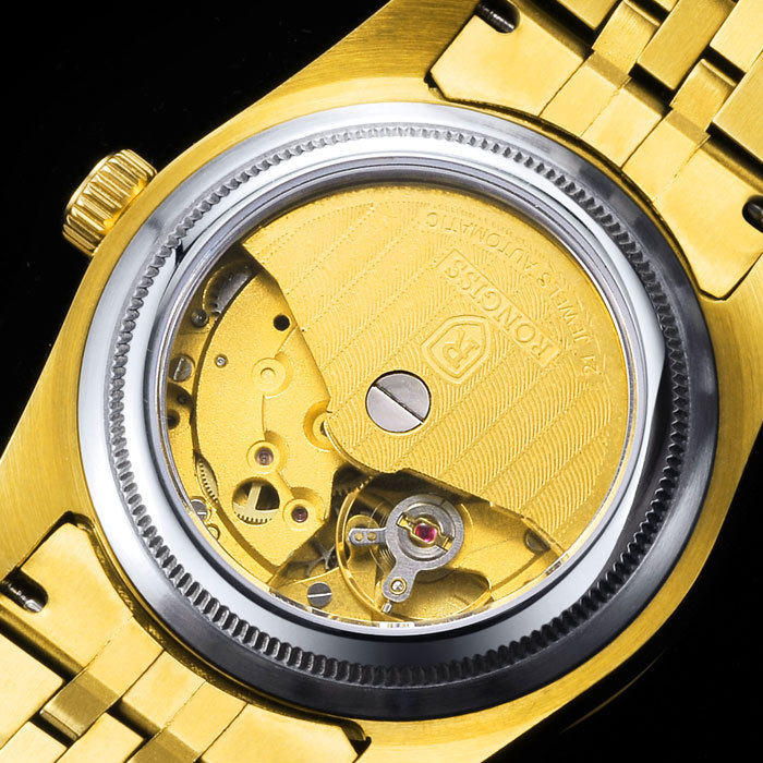 正品名牌黄金手表男士腕表钢带款全自动机械表防水镂空金表男表