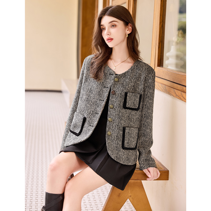 她池小香风圆领复古短款外套