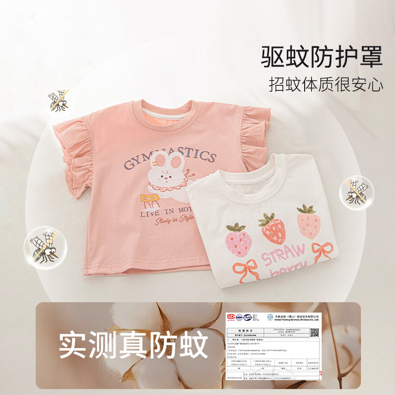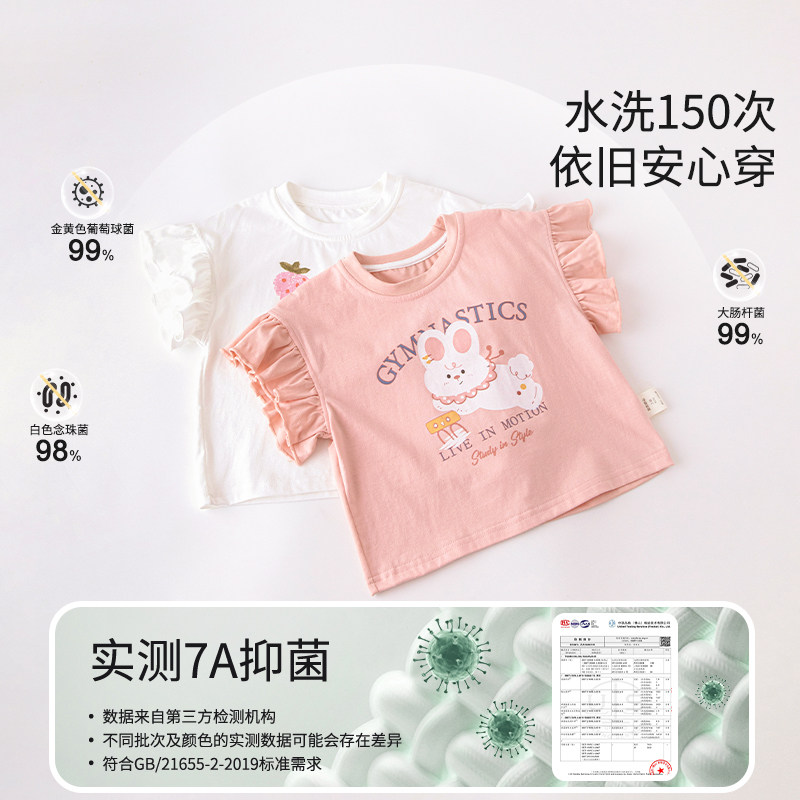 女童短袖T恤夏装2025新款圆领洋气花边纯棉儿童上衣宝宝百搭衣服