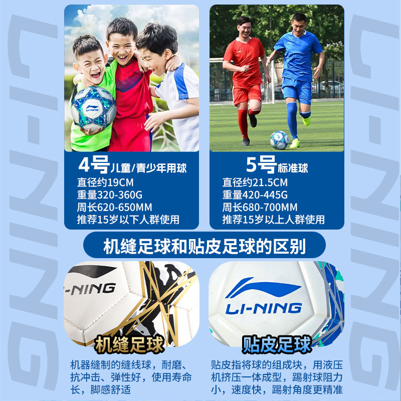 李宁足球5号成人中考专用儿童小学生4号专业比赛男正品官方旗舰店