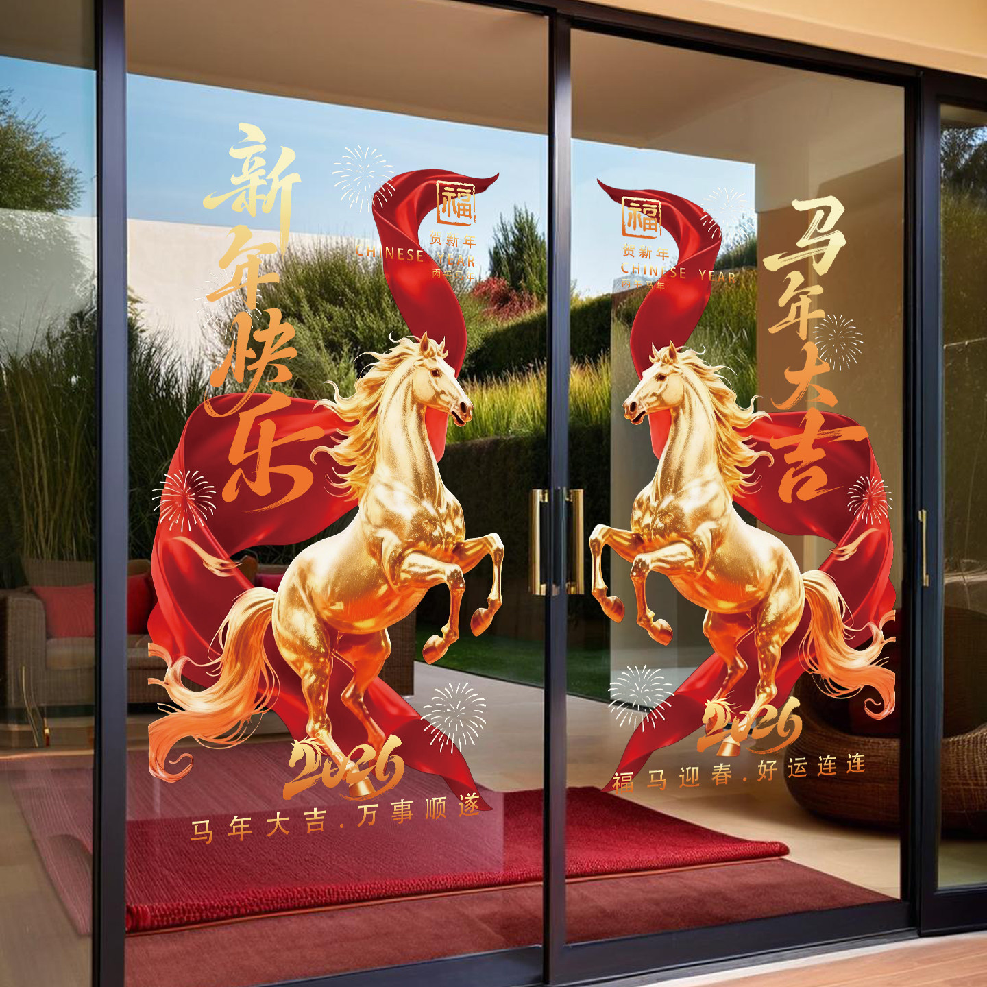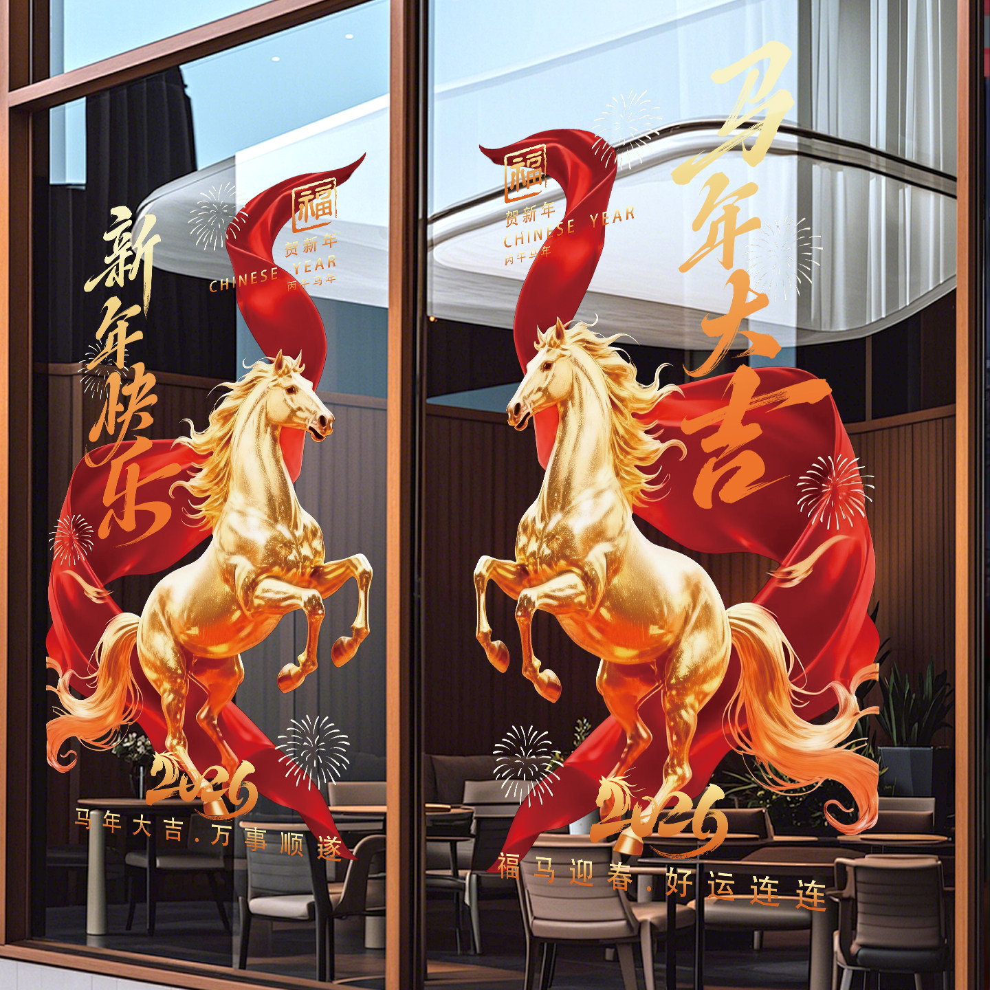 2026新款新年门贴贺年玻璃贴纸商场公司马年对联海报过年静电窗花