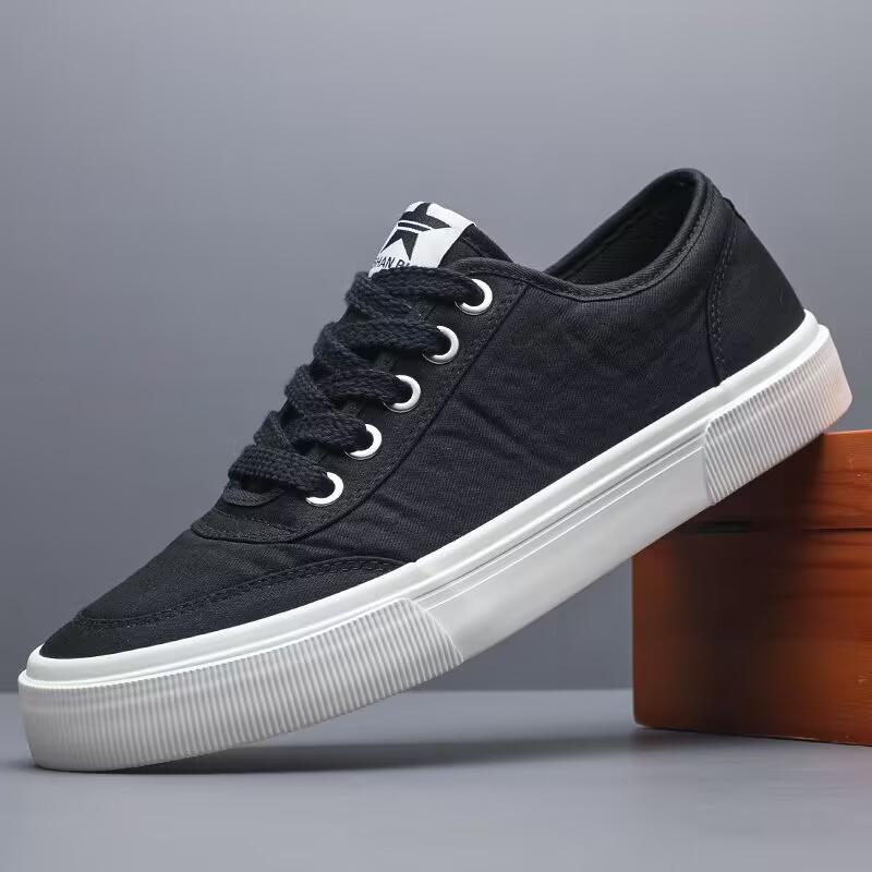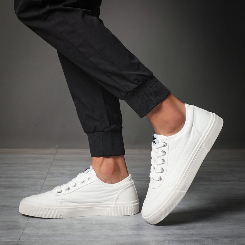 板鞋男简约系带帆布鞋秋季新款潮流百搭青年休闲鞋时尚厚底小白鞋
