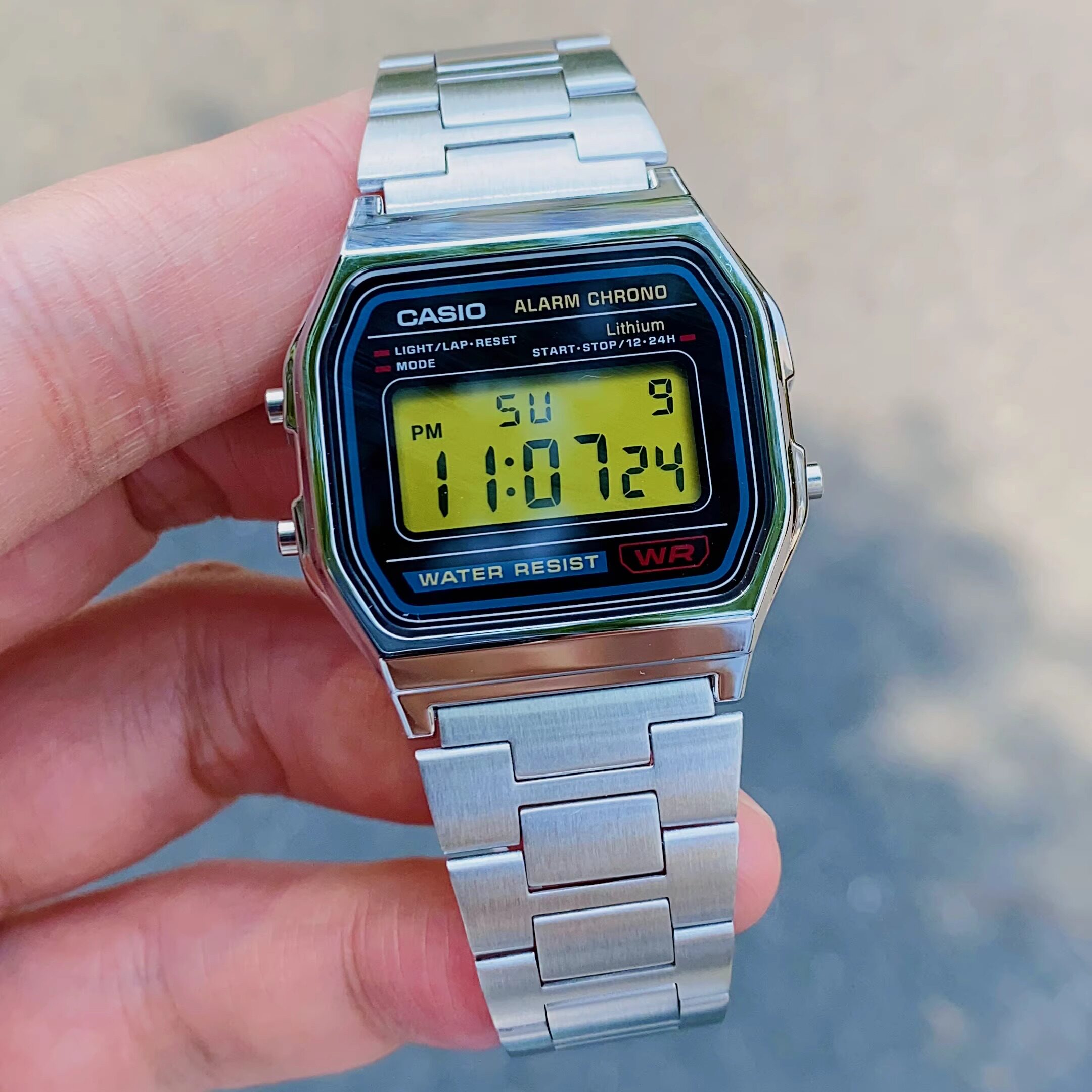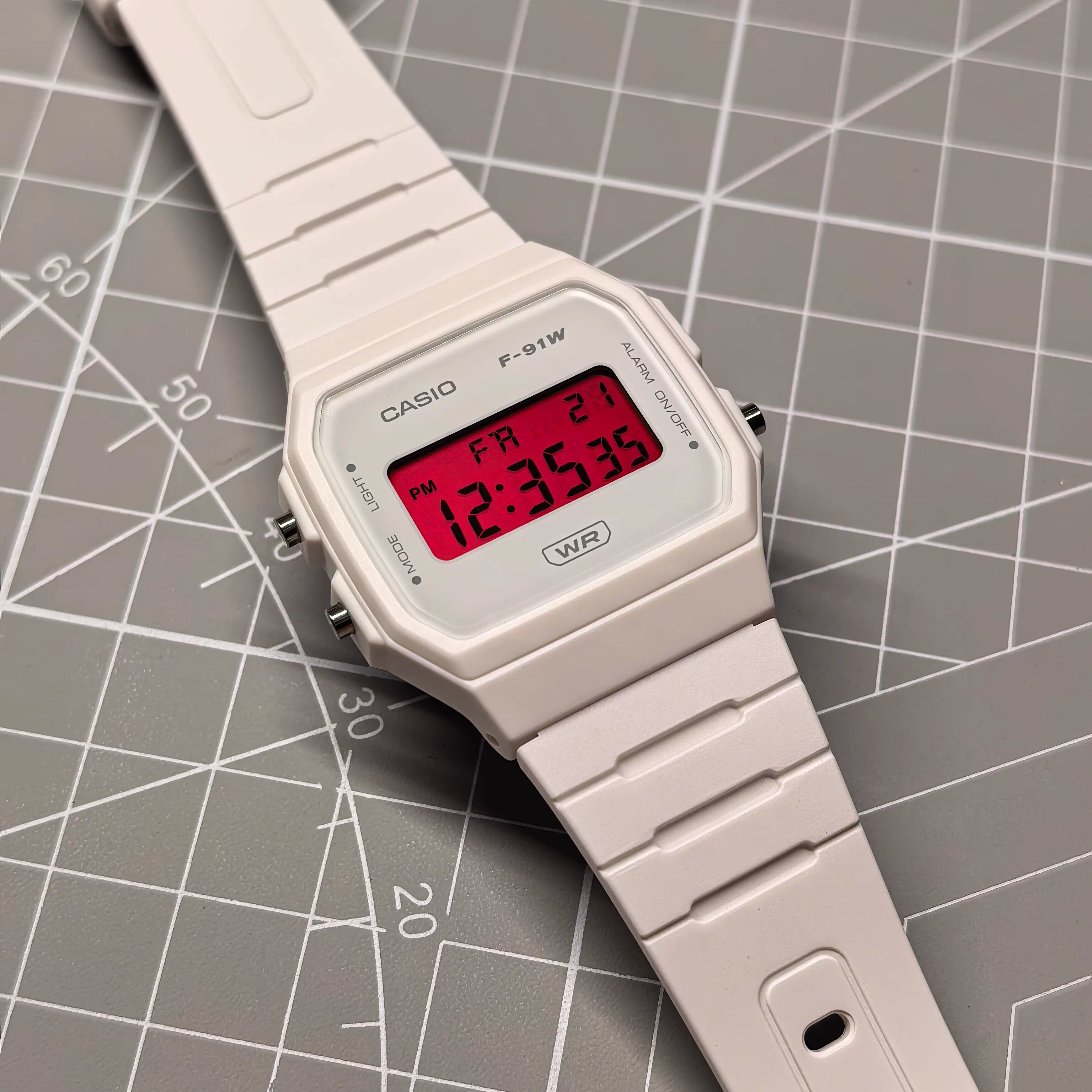卡西欧CASIO手表A158WA/F91W复古银色小方块改装红色屏幕彩虹贴纸