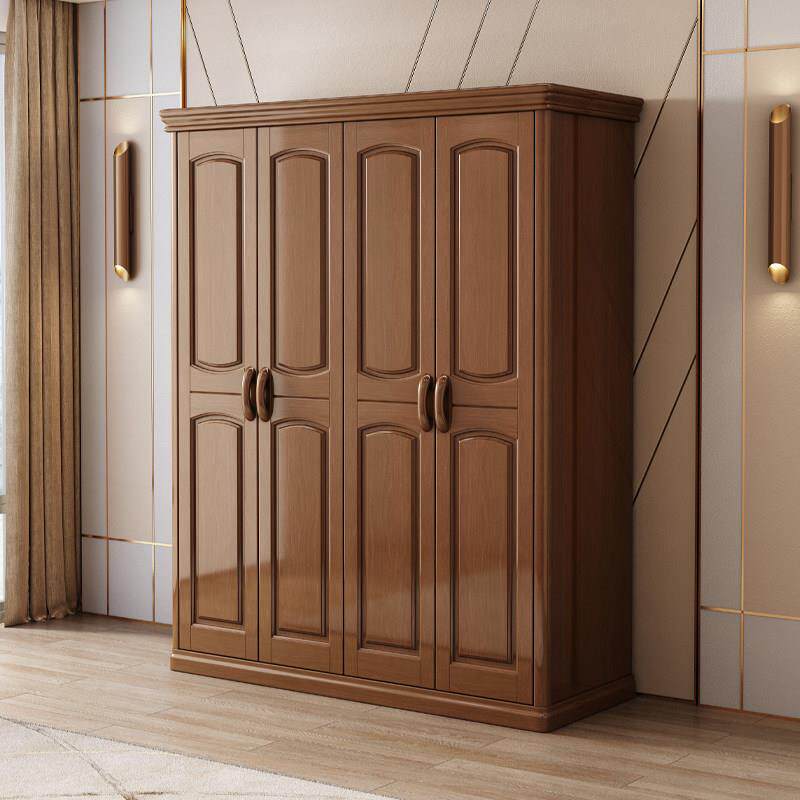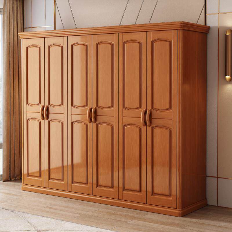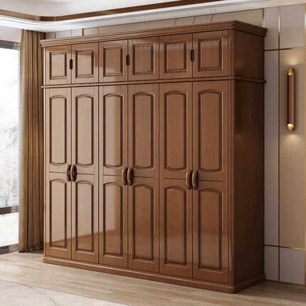 实木衣柜现代简约中式23456门整体对开 门加顶卧室组装衣柜