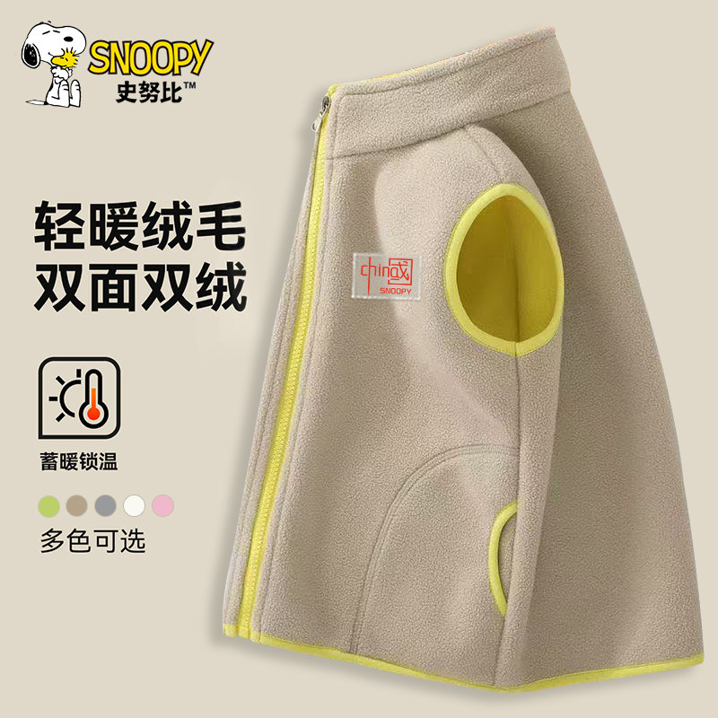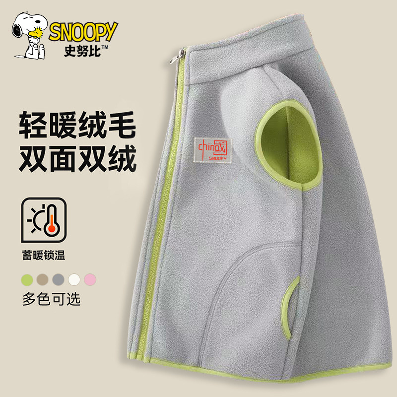 史努比男童女童同款春秋舒适小立领防风保暖双面绒马甲2026新款潮