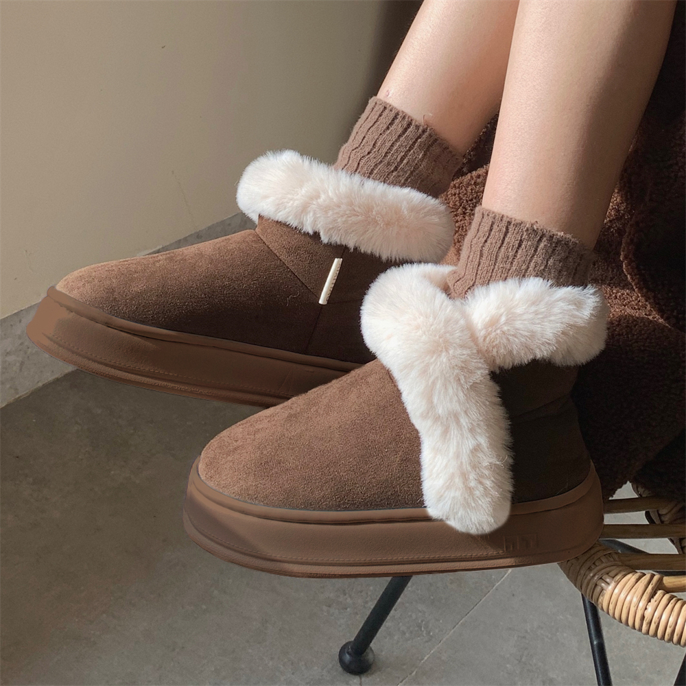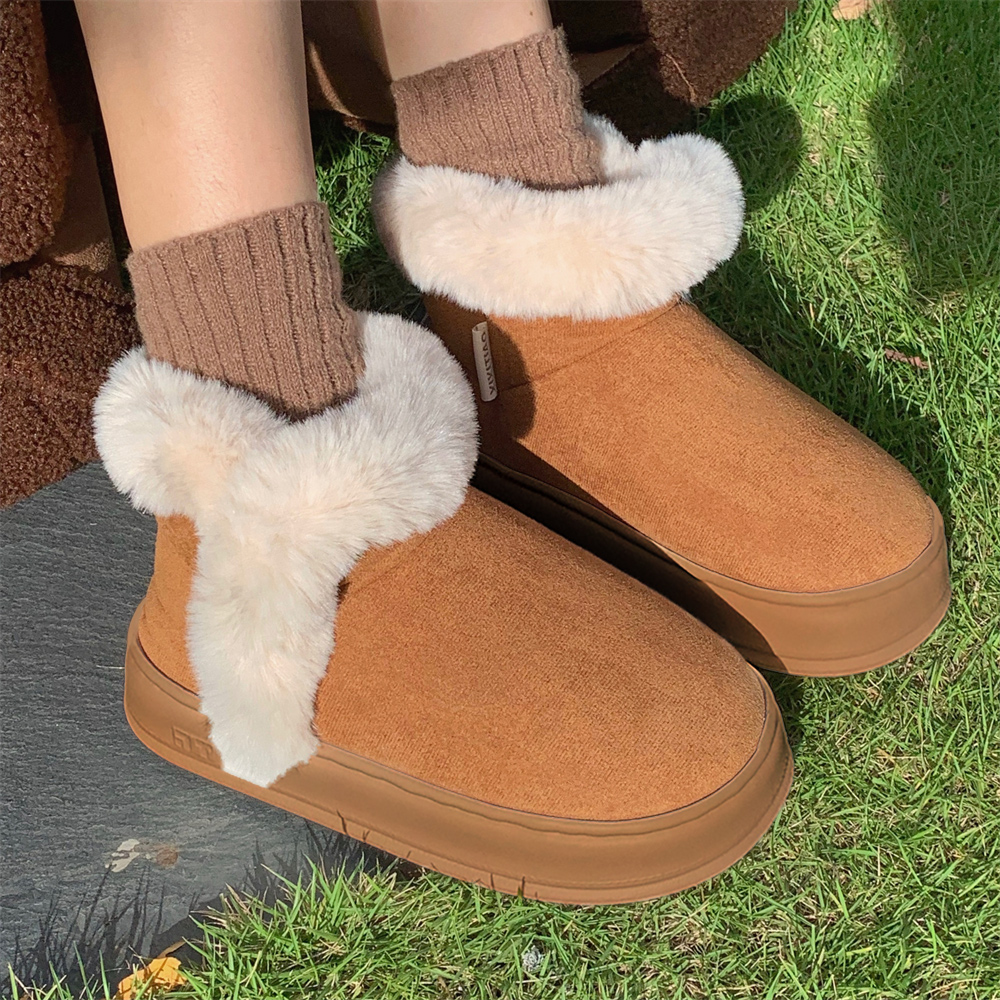 细细条 冬季保暖加绒女士时尚外穿棉鞋ins韩版复古百搭厚底雪地靴