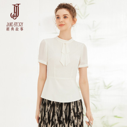 别致法式立领雪纺衫女2025新款夏季时髦小众气质短袖白色衬衫上衣