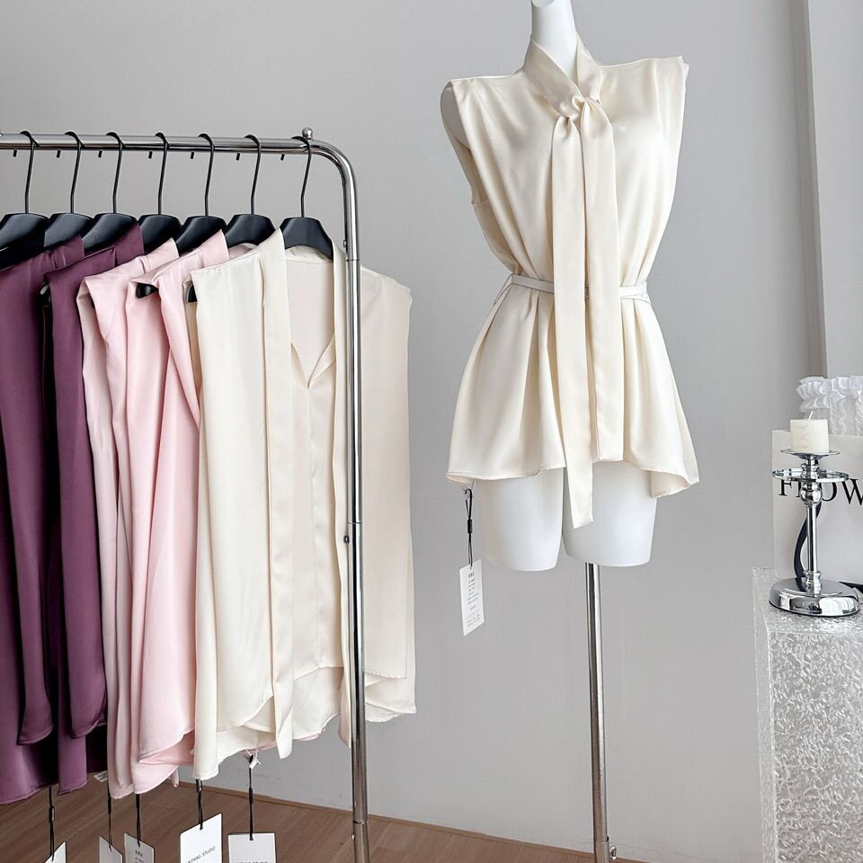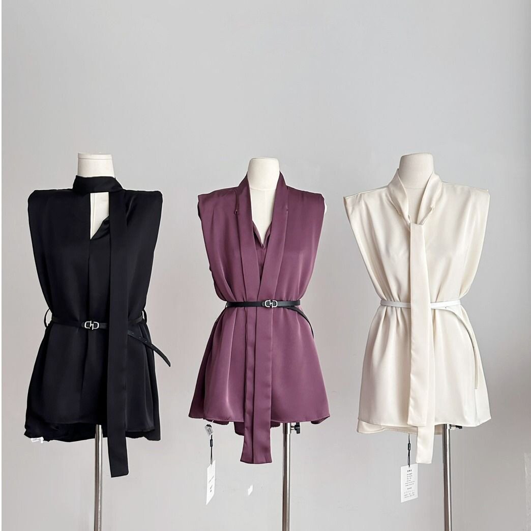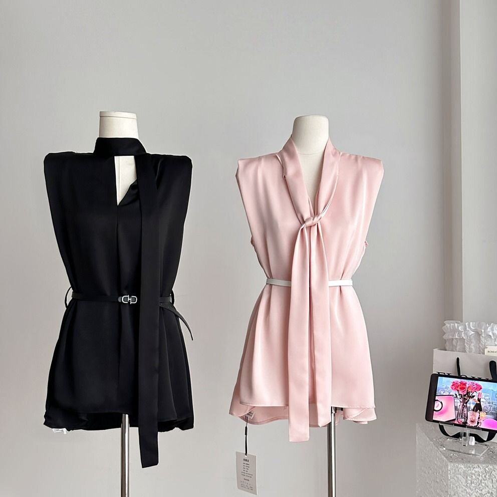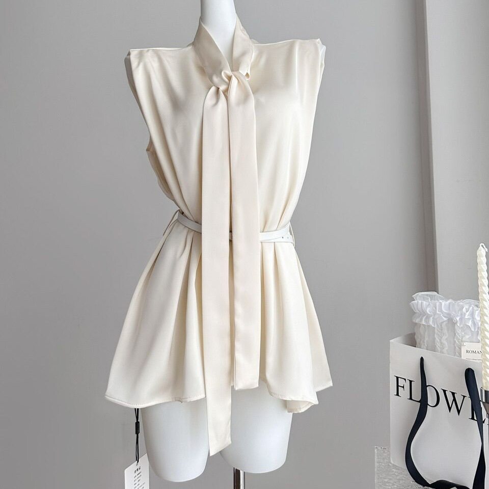 紫堇流光高级感气质缎面无袖飘带衬衫上衣2026年夏季时尚新款