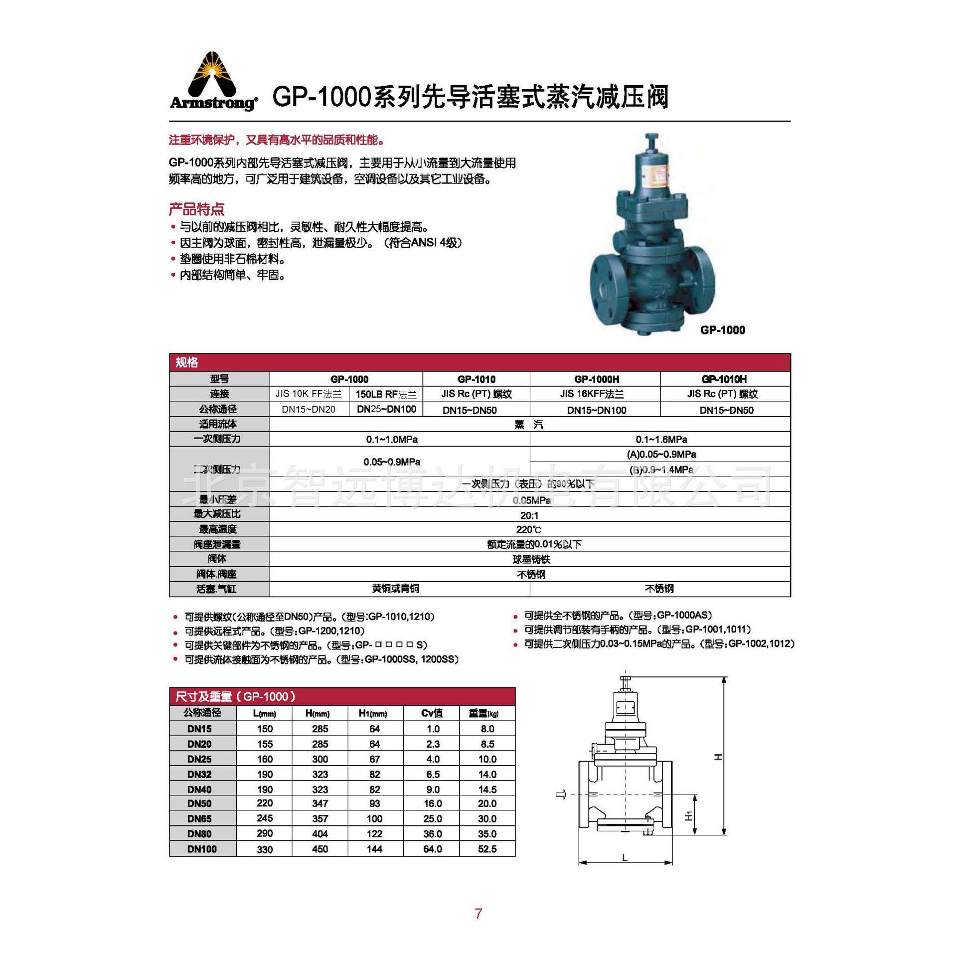 GP-1000减压阀GP-1000HEN美国阿姆斯壮Armstrong蒸汽稳压调节阀门
