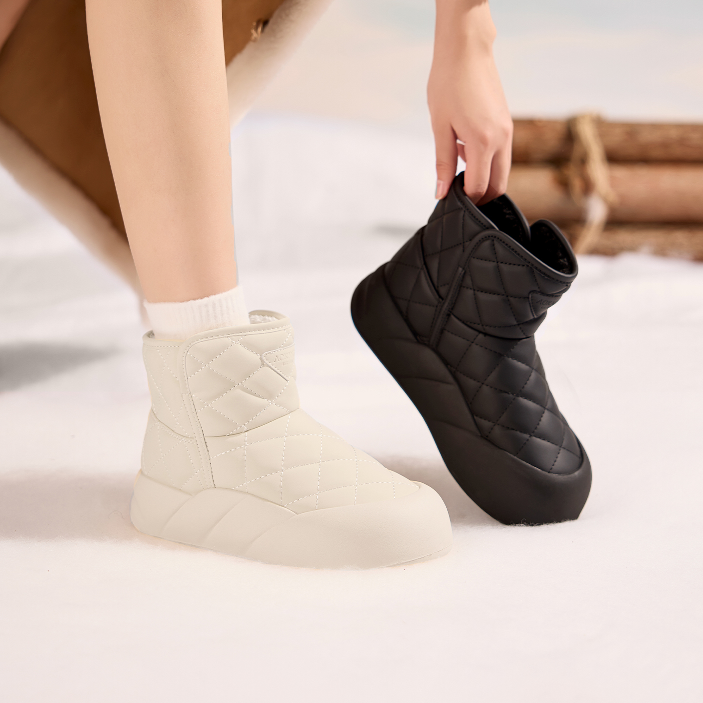 奥康 女鞋2025冬季雪地靴简约菱格加绒保暖面包鞋时尚百搭短靴