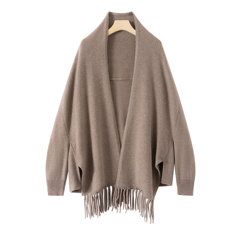 羊绒披肩女开衫外搭秋冬季保暖护肩流苏斗篷围巾针织百搭气质外套