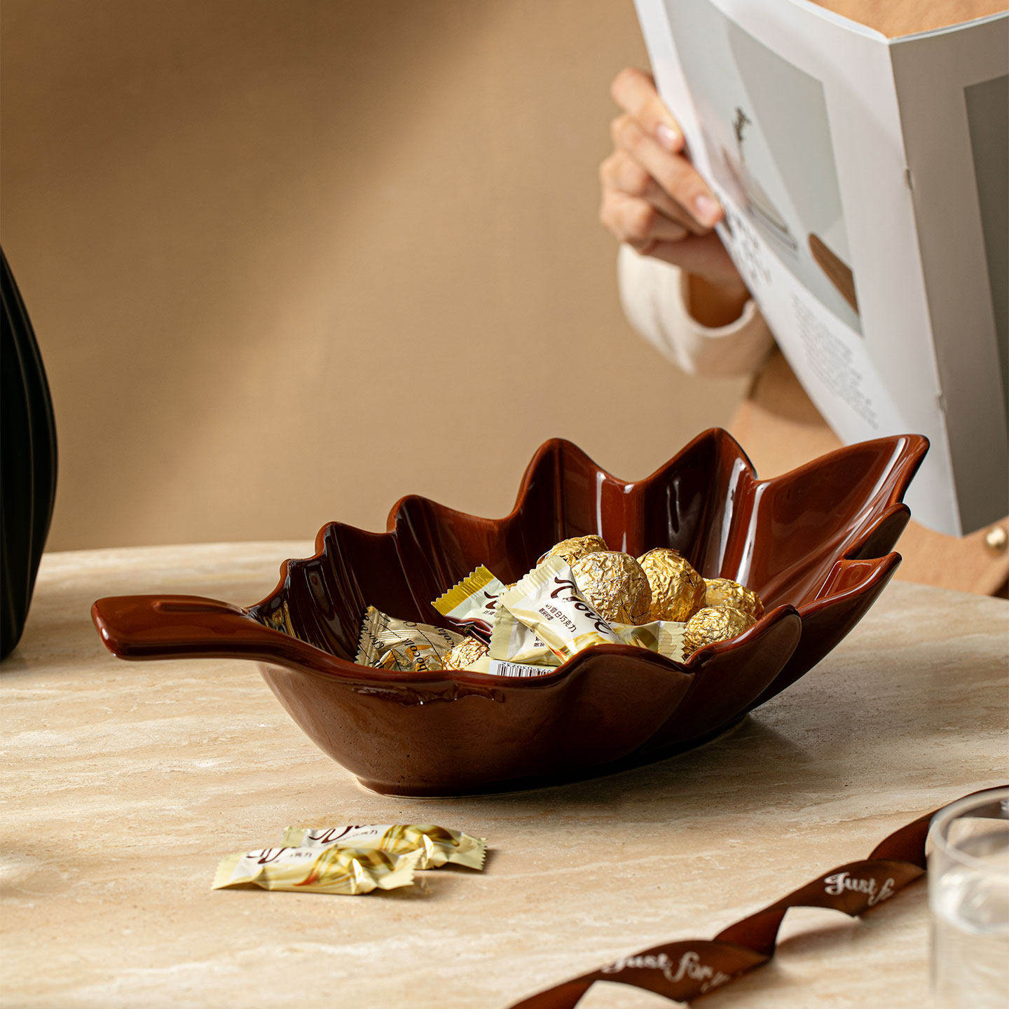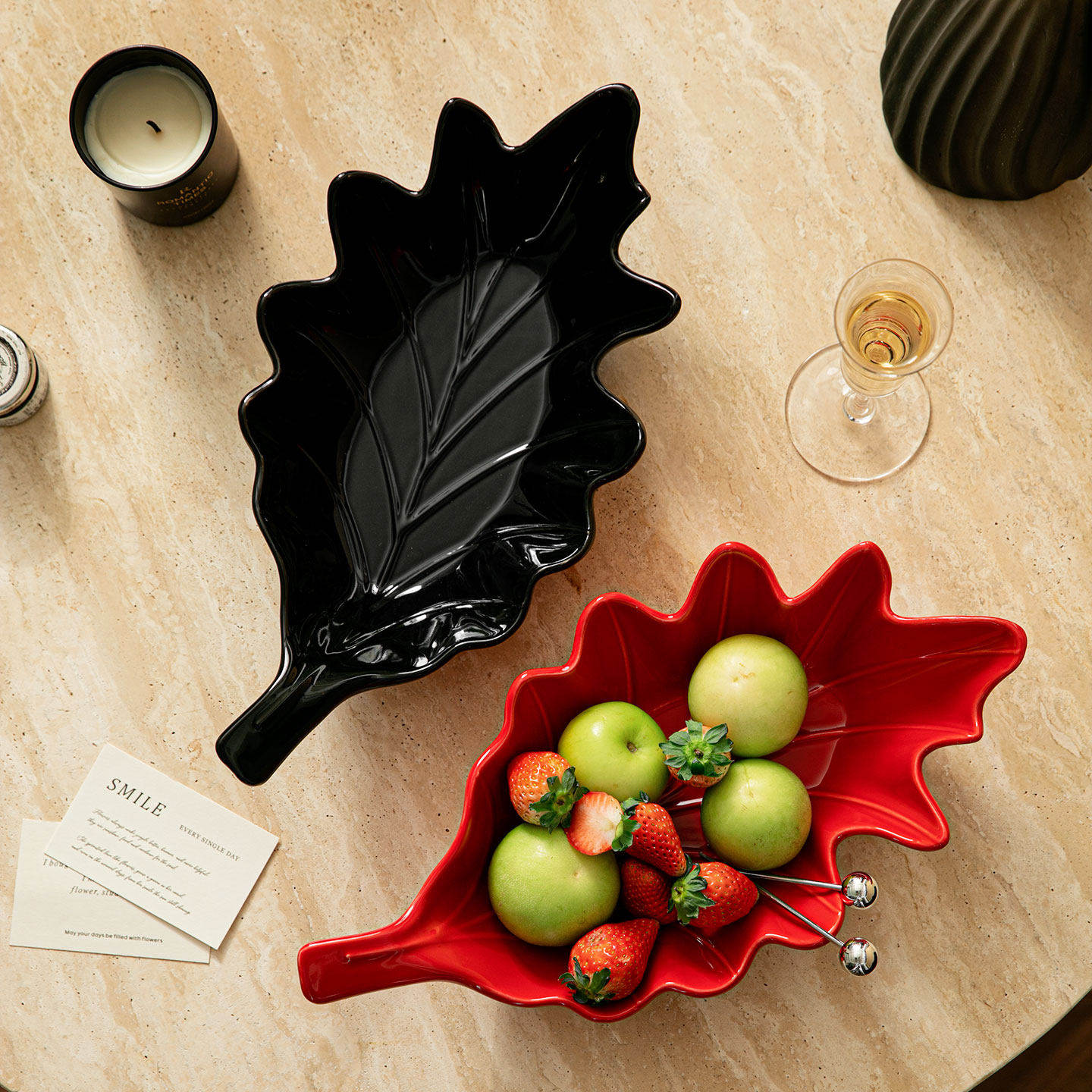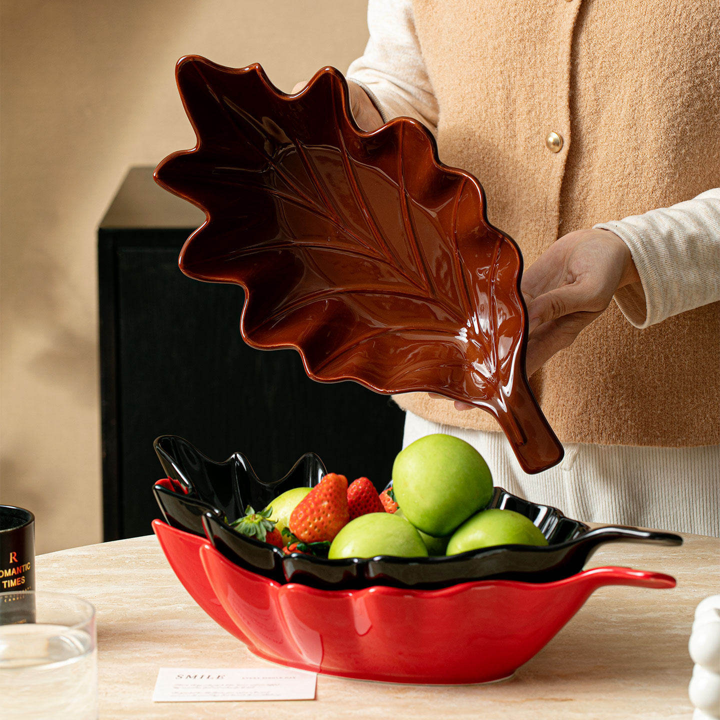 创意枫叶水果盘家用客厅零食糖果收纳盘高档精致乔迁之喜待客果篮