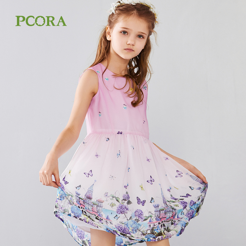 巴柯拉专柜同款夏季儿童连衣裙无袖中大童女童可爱甜美印花背心裙