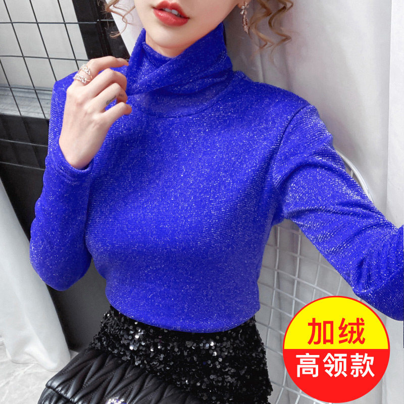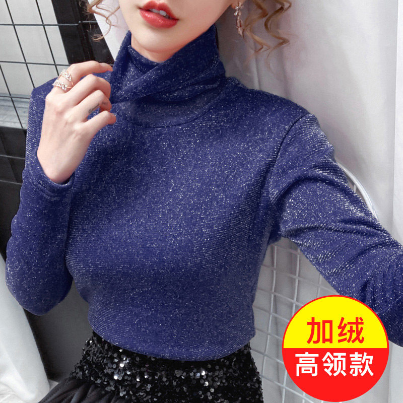 亮丝打底衫女高领加绒加厚网纱上衣秋冬款保暖百搭外穿长袖女T恤