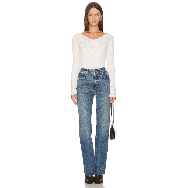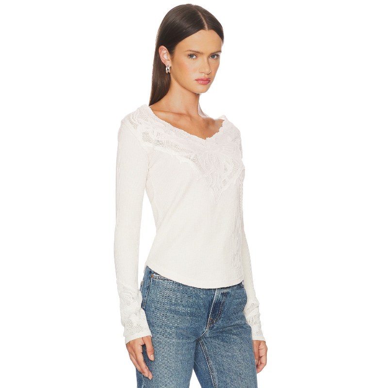 [冬季新品]Free People 长袖内搭上衣象牙白V领简约打底衫REVOLVE