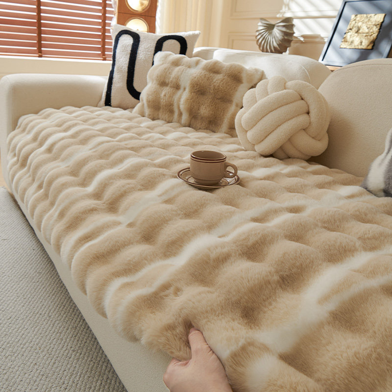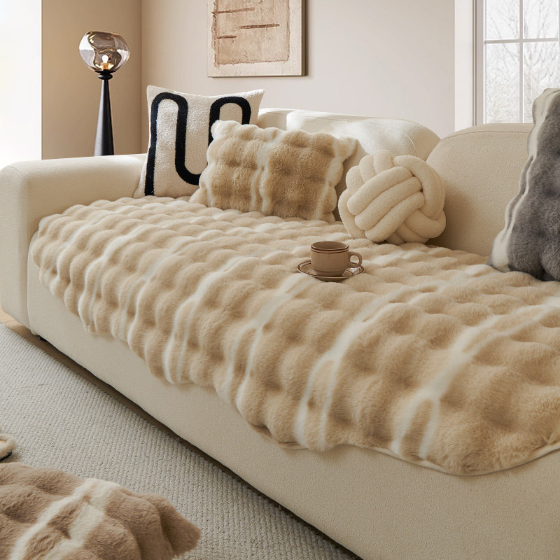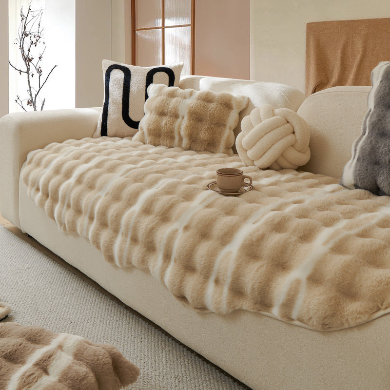 轻奢风兔毛绒沙发垫2025新款异形不规则奶油坐垫防滑沙发盖布巾