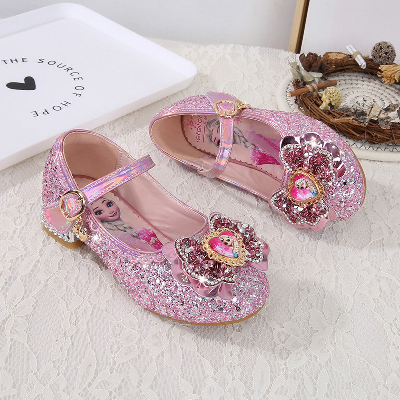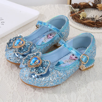女童公主鞋2026新款春秋高跟爱莎水晶小女孩软底配裙子艾莎儿童鞋