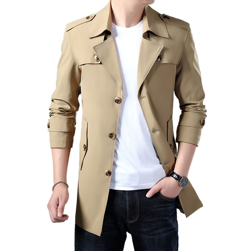 长期款春秋风衣男青年男士商务中长款男装外套色