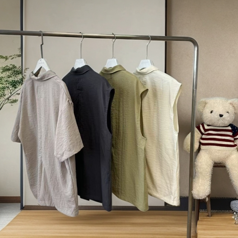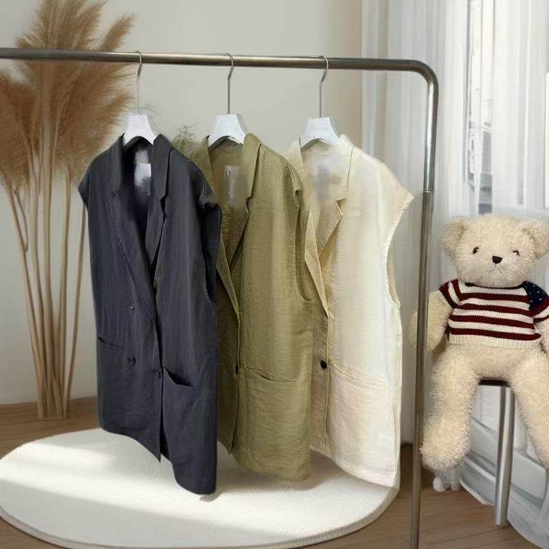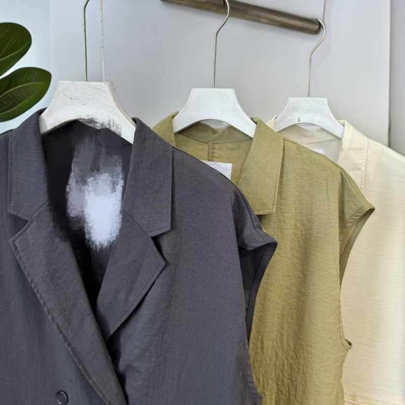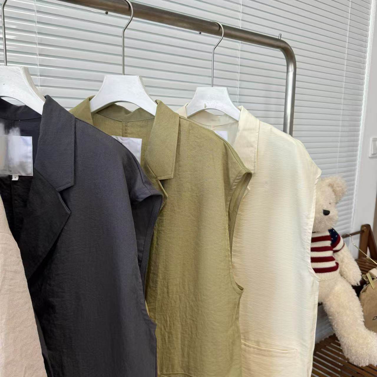 日系双排扣百搭显瘦遮肉西装领宽松休女气质马甲短袖外套25070175