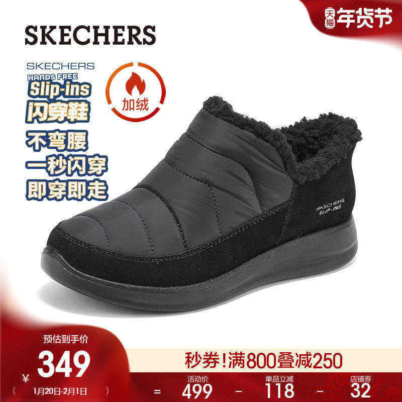 斯凯奇闪穿鞋|秋冬季女子时尚一脚蹬加绒休闲鞋舒适保暖百搭棉鞋