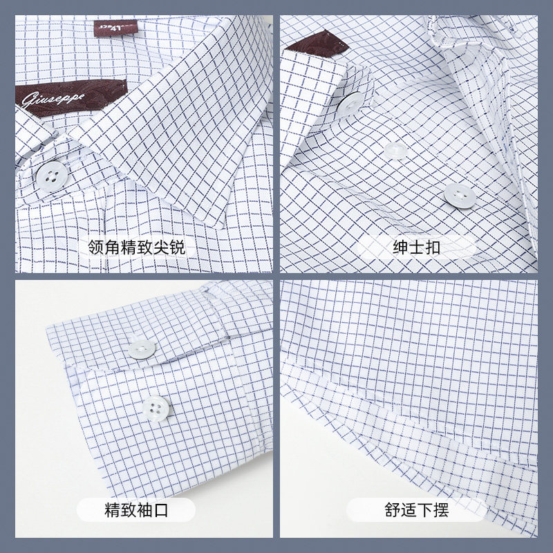 【免烫】乔治白春秋男士温莎领长袖衬衫商务纯棉格子衬衣修身上衣