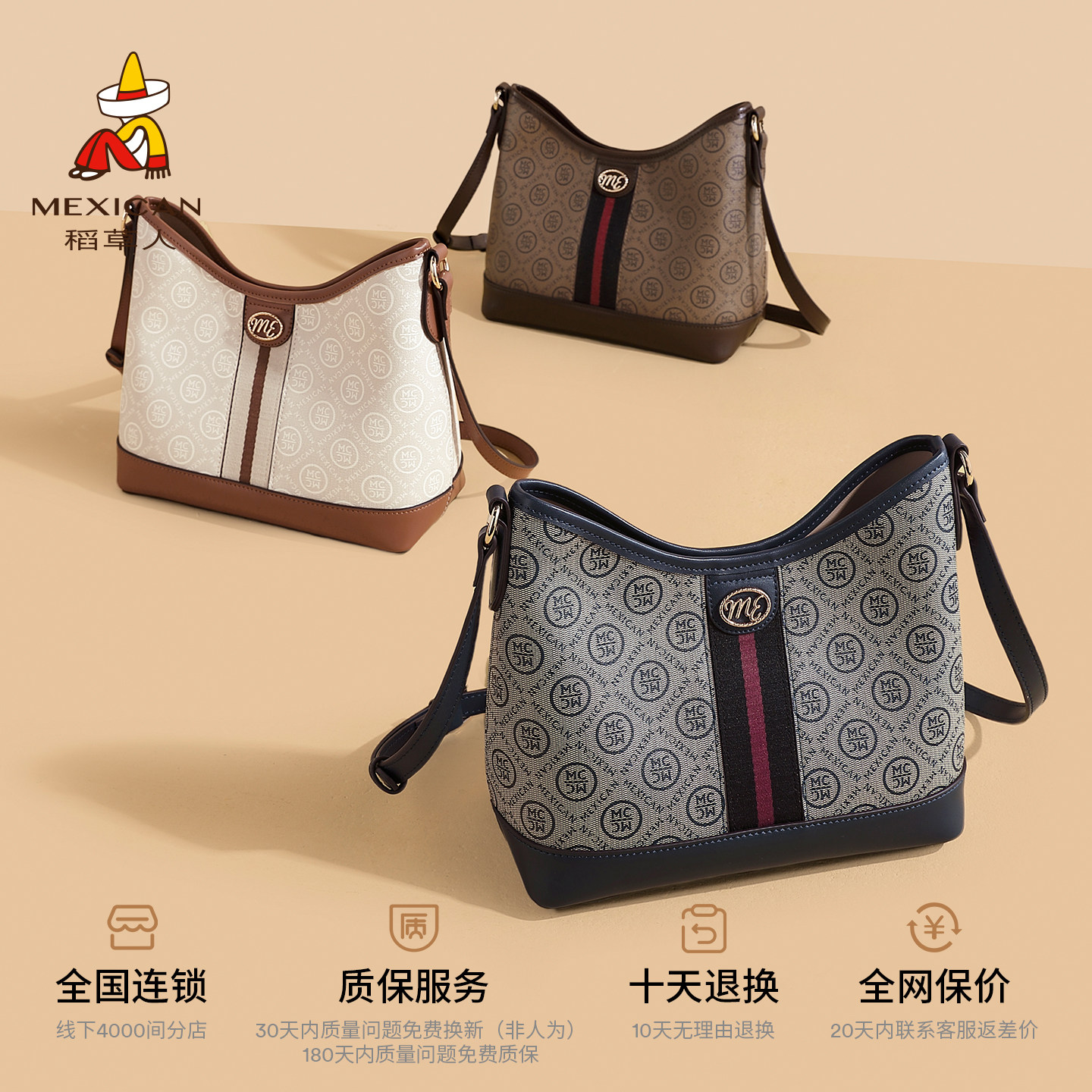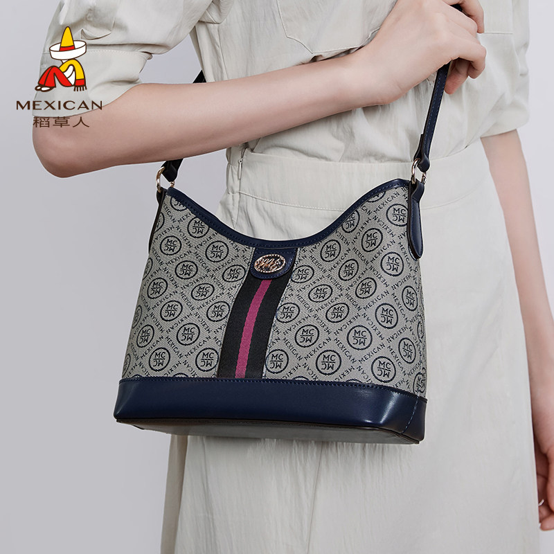 稻草人包包女2025新款单肩包撞色通勤包百搭女士水桶包斜挎包正品
