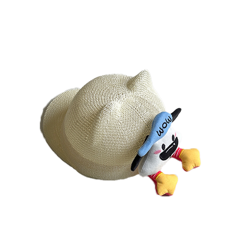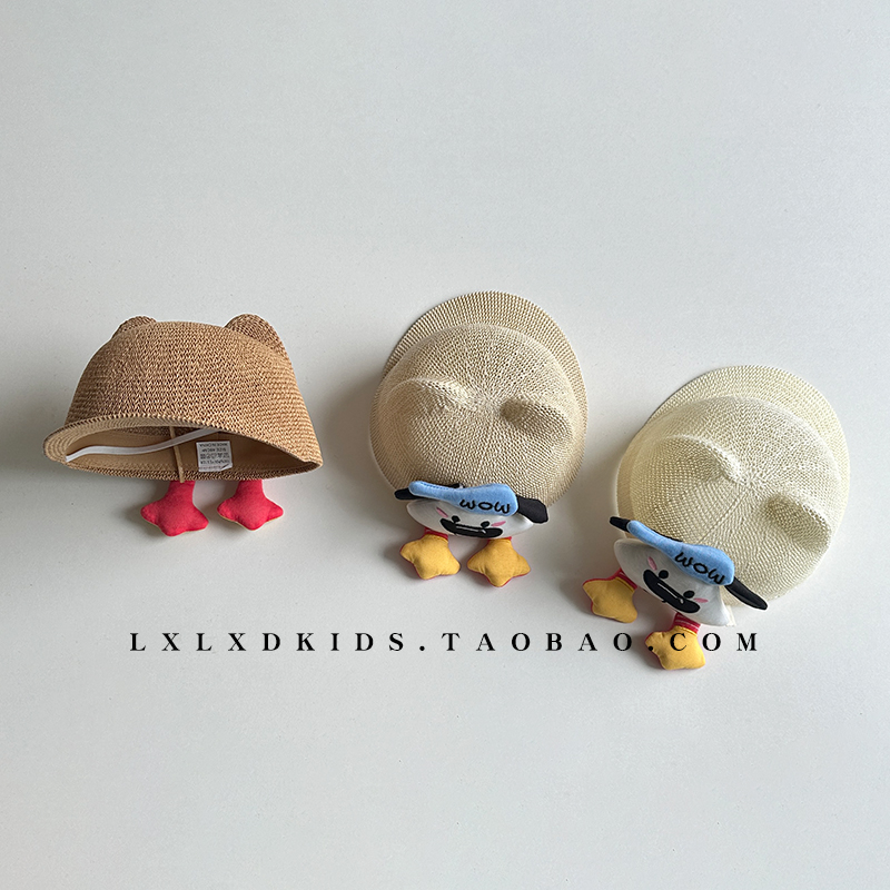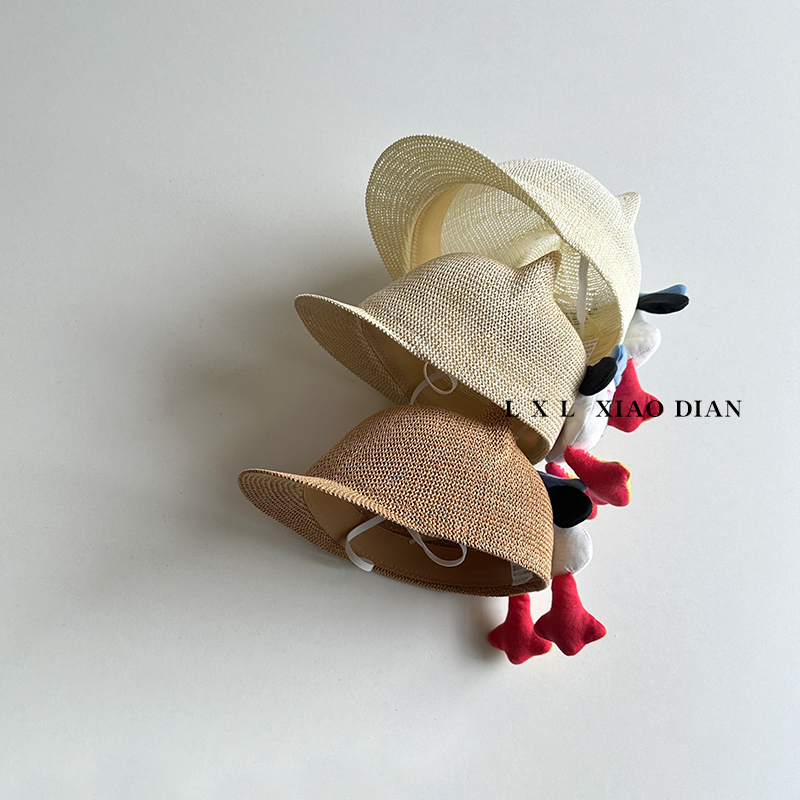 婴儿帽子男宝夏季薄款编织卡通狗狗编织遮阳鸭舌帽儿童防晒草帽女