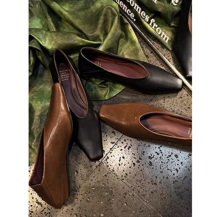 法式晚风气质V口女巫鞋奶奶鞋